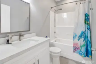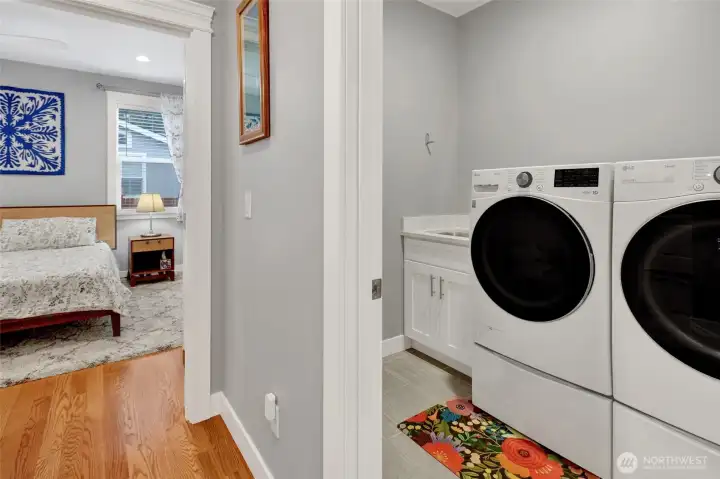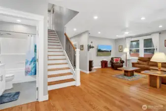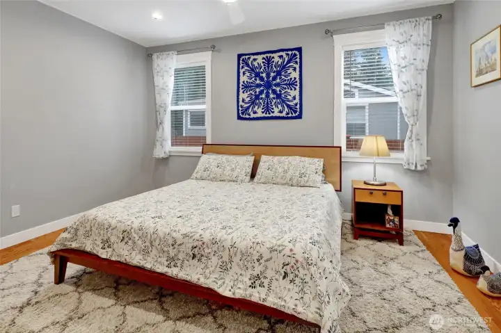 Discover the perfect blend of modern luxury and future potential on this pristine .51-acre estate. Built in 2020, this like-new 2,040 sq ft custom home features 9ft ceilings and an open-concept flow designed for both comfort and productivity. The heart of the home is a chef’s kitchen with quartz counters, stainless steel appliances, and under-cabinet lighting, flowing seamlessly to a covered back patio for year-round entertaining. Professionals will love the dedicated main-floor office plus an upstairs bonus room, perfect for a second workspace, gym, or hobby room. The primary bedroom suite, located on the main floor, provides easy accessibility. The massive, level yard is an outdoor oasis featuring a garden, cherry blossom trees, wisteria, a premium playset, and a large shed for storing all your tools. The large parcel is fenced into two sections and has a secondary driveway access, with room for a shop or DADU potential (buyer to verify with county/health dept), plus future subdivision possibilities if sewer becomes available. No need to worry about cleaning the gutters as they have LeafGuard installed. Equipped with a generator hookup, high-efficiency heat pump with A/C, and a cozy wood fireplace, this home is meticulously prepared for every season.