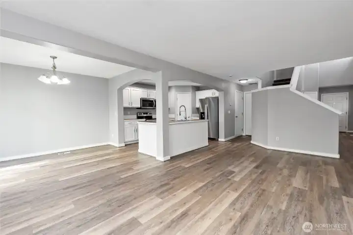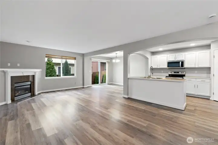 This charming, low-maintenance home is located in a welcoming community with neighborhood parks and play areas. The main level features an open “great room” concept that seamlessly connects the living, dining, and kitchen spaces — perfect for everyday living and entertaining. The dining area opens to a private patio for easy indoor-outdoor enjoyment. The kitchen includes all appliances, ample cabinetry, and functional workspace. A convenient half bath completes the main floor.Upstairs, the spacious primary suite offers a 5-piece bath and large walk-in closet. Two additional bedrooms, a full bath, and a versatile bonus nook provide flexible space for guests, office, or hobbies. The upstairs utility room includes washer and dryer for added convenience.A 2-car garage with extra storage and easy-care landscaping complete this move-in ready home. A must-see opportunity in a fantastic location with easy access to JBLM!