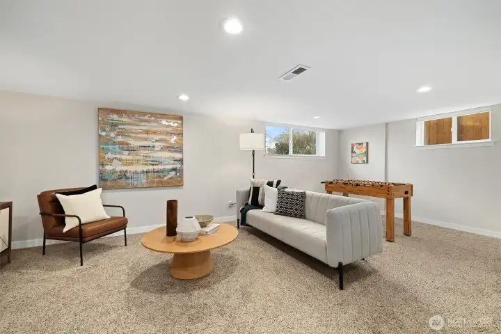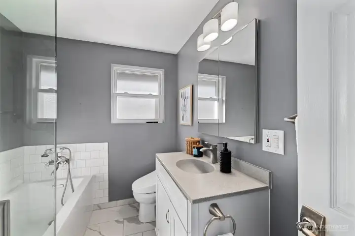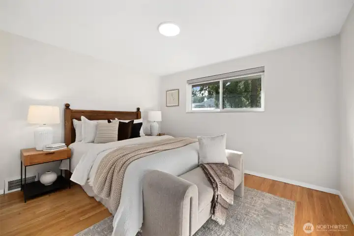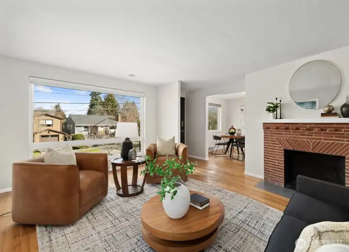 Tucked along a peaceful Wedgwood street, this classic mid-century home offers warmth, space, and enduring appeal. Sunlight pours through expansive windows, illuminating the inviting main level where a gracious living room anchored by a statement fireplace sets the tone for comfort and connection. Original oak hardwood floors stretch across the main level, adding character and continuity, while the thoughtfully renovated kitchen and baths introduce a fresh, refined aesthetic. Three true bedrooms on the main floor offer a practical and highly desirable layout for everyday living. The lower level unfolds with exceptional versatility, featuring two additional bedrooms, a second fireplace, and an expansive bonus area ideal for movie nights, game days, work-from-home needs, or future MIL potential. Abundant storage enhances functionality, and major system upgrades, including updated electrical, plumbing, windows, furnace, and air conditioning, provide lasting confidence and comfort. Outdoors, the flat, fully fenced backyard invites dining al fresco on the Trex deck, evenings beneath the stars in the hot tub, and space to garden or gather. Dreaming of urban homesteading? Your chicken coop awaits! Complete with an attached one-car garage and ideally located near coveted schools, Dahl Playfield, neighborhood cafés, and just minutes to the University of Washington, University Village, and downtown Seattle, this is timeless Wedgwood living at its best!