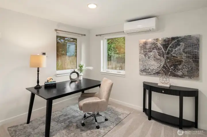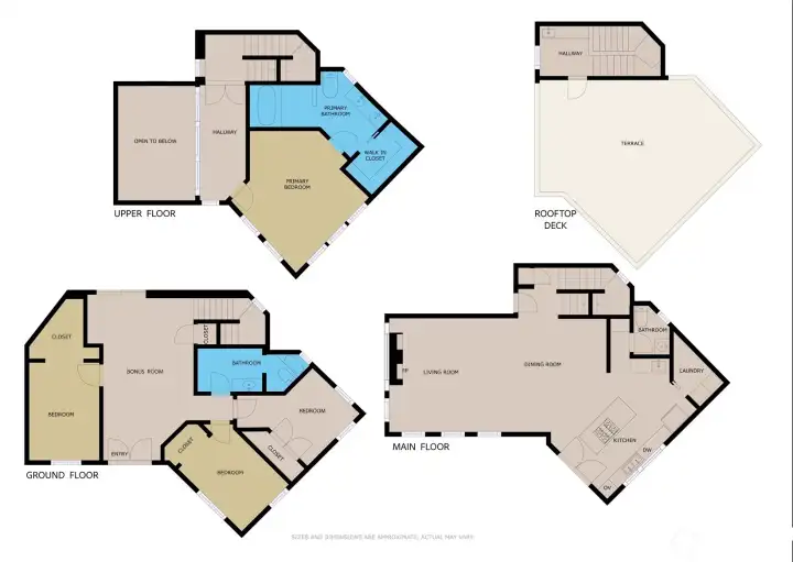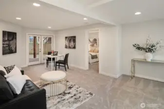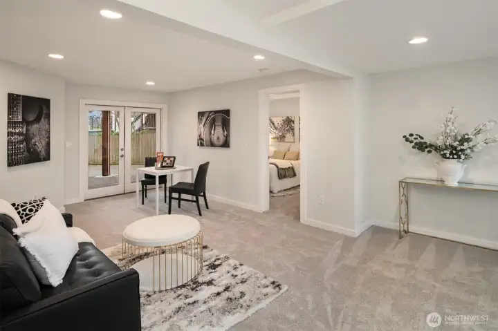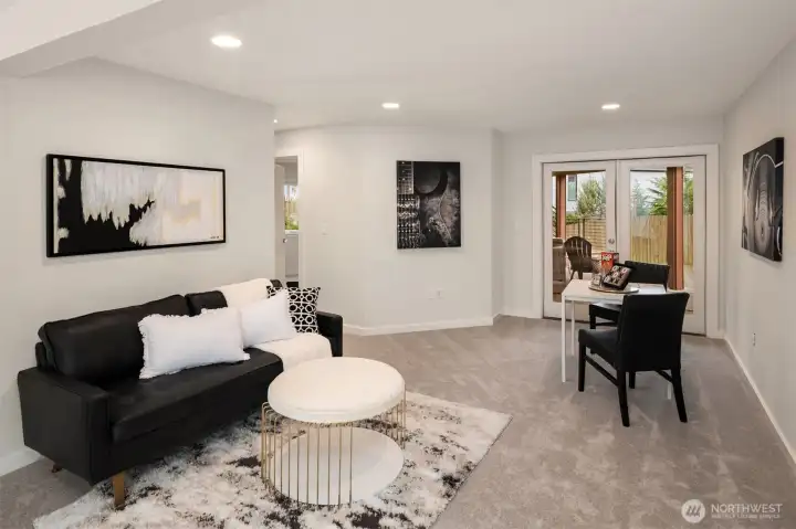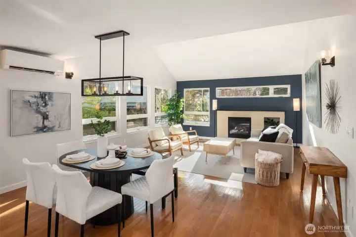 Welcome home to this beautifully appointed 4 bedroom, 2.5 bathroom residence offering elevated city living in Northeast Seattle. Vaulted ceilings and expansive windows create an airy feel, while the open concept main level flows seamlessly between the living, dining, and kitchen spaces, ideal for both everyday living and entertaining.The stylish kitchen features granite and concrete counters, stainless steel appliances, a wet bar, and a walk in pantry with utility space. Just off the kitchen, a spacious deck invites effortless indoor outdoor gatherings. Upstairs, the primary suite feels like a private retreat with a soaking tub, rain shower, and walk in closet. The lower level features three additional bedrooms, providing flexibility for guests to have a home office, or art room, along with a cozy bonus room that opens to a large patio, private yard, and salt water hot tub. The rooftop deck truly sets this home apart, complete with its own mini wet bar and gas BBQ hookup, perfect for sunset evenings and territorial views. Fresh paint and new carpet make this home move in ready. Located just minutes to Magnuson Park and University Village, with easy access to dining, shopping, recreation, and commuter routes, this is comfort and convenience at its finest.