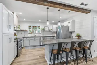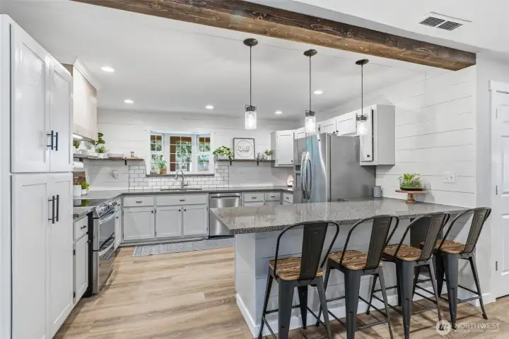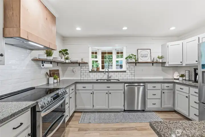 Welcome home to this beautifully updated MODERN FARMHOUSE! This spacious five-bedroom, three-bathroom home is tucked away on a quiet dead-end street, offering both privacy and comfort. Step inside to a generous living room perfect for entertaining, a deluxe kitchen with newer stainless steel appliances, walk in pantry, granite counter tops and tile backsplash, open to the stunning dining room with vaulted ceilings and filled with natural light. Primary suite boasts of a walk in closet, bathroom and sliding barn doors. The main level features new LVP flooring, while the upstairs offers all-new carpet. You’ll also find an additional family room, dedicated office space, and a versatile bonus area on the second floor—ideal for a playroom, media room, or home gym. There is also a private guest room which could be used as an office or home learning center.The updated bathrooms showcase elegant marble countertops, new vanities, tubs, lighting and LVP flooring. The interior and exterior has been freshly repainted. There is so much storage in this home plus an attached mini shop. With a newer roof, HVAC system and extensive recent remodeling throughout, this home is truly move-in ready. Outside, enjoy the spacious yard complete with raised garden beds, a chicken run, fruit trees and a 10x12 shed with a concrete floor. The large covered patio creates the perfect setting for year-round outdoor entertaining. Don’t miss your opportunity to tour this stunning modern farmhouse today!
