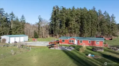Welcome to your private Whidbey retreat! Situated on approximately 5 level, fenced, usable acres of pasture & wooded beauty, this property offers the perfect blend of open space, privacy, & functionality. With 1,867+/ sq ft of living space, this home features multiple gathering areas including a spacious family room filled with natural light, expansive windows, & generous square footage- creating an inviting space ideal for entertaining, relaxing, or everyday living. A separate cozy living room with a wood-burning stove offers the perfect spot to unwind on cool Whidbey evenings. The kitchen flows seamlessly into the dining area & includes ample cabinet and counter space & a walk in pantry. The primary suite is a true retreat, complete with a beautifully remodeled bathroom and two closets for ample storage. Additional bedrooms plus a dedicated office space provide flexibility for guests, hobbies, or working from home. Outside, the property truly shines. A substantial 30x48 shop with 3 bays (with 10x12 ft doors), dedicated workspace, & loft offers endless possibilities for projects, storage, or home-based business needs. Durable Hardiplank siding & a metal roof add long-term value & peace of mind. Level pasture areas are ideal for animals, gardening, or simply enjoying wide open space, while wooded portions provide privacy & natural beauty. This is the lifestyle property you’ve been waiting for -room to live, work, & play...all in one exceptional setting!!
