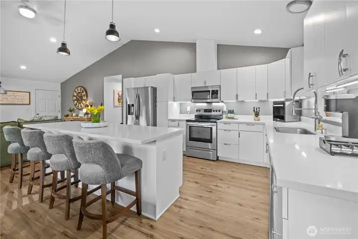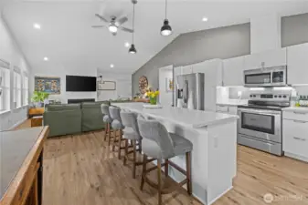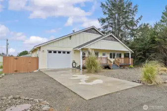Dreaming of coastal living? This welcoming 1,496 sq ft beach home offers 2 bedrooms and 1.75 baths with a bright, airy layout and vaulted ceilings. The open living space features vinyl plank flooring, stainless steel appliances, and quartz countertops—perfect for everyday comfort or hosting friends. The oversized 20x13 primary bedroom creates a relaxing retreat, while the covered front porch is ideal for soaking in ocean breezes. Out back, enjoy a fully fenced yard with concrete patio, gazebo, and easy-care landscaping. Extras include a propane fireplace, attached one-car garage, RV parking, and a powered shed ready for guests or a creative studio. Just minutes from ocean beaches and downtown Ocean Shores amenities—your perfect beach escape awaits!