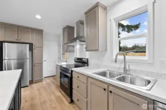 If you missed the first couple, here's your last chance! Step into this brand new three-bedroom, two-bath home in East Port Angeles, conveniently located near grocery and hardware stores. Enjoy easy access to Highway 101 while being nestled in a friendly neighborhood away from the bustle. This home features modern finishes, stainless steel appliances, and vaulted ceilings that create a warm and open atmosphere. The mostly fenced flat lot offers ample parking and outdoor space, complemented by beautiful mountain views. With city water and sewer connections and PUD power, you’ll have everything you need for easy living!