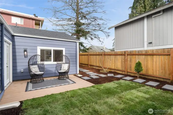 Welcome to this fully permitted freshly remodeled south facing Greenwood rambler with designer-level finishes throughout with no stones left unturned! One car garage w/ rare 4 car driveway for all your car storage needs! Enter into sun-drenched south facing living room, and warm wide-plank flooring, topped with a cozy fireplace. Wow your guests with your modern kitchen with waterfall island and brand new SS appliances w/1 year warranty. Primary suite features a large walk-in closet with a luxurious bathroom: double sink vanity, LED mirror, large walk in shower. New siding, electrical wiring, panel and roof for peace of mind. Private fenced yard, with a premium trex deck perfect for gatherings or quiet mornings. All just minutes to Ballard, Green Lake, Trader Joe’s, parks, SLU, and the vibrant dining scene that makes Greenwood so loved. Welcome Home!