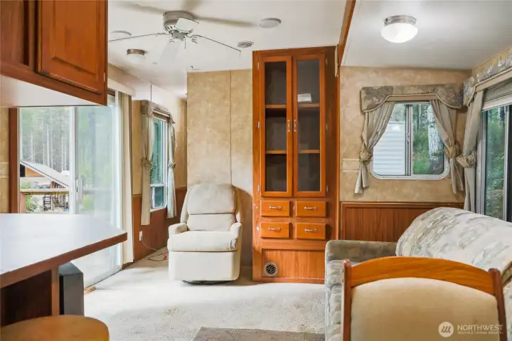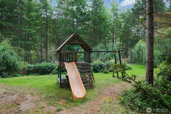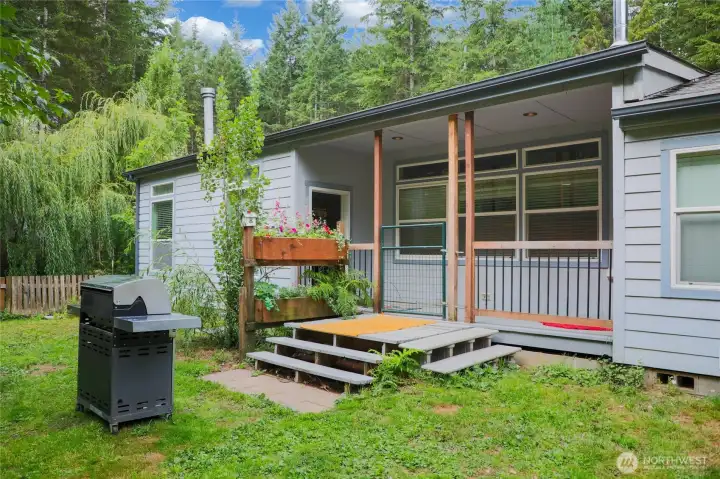 Enter through your private gate with a row of fruit trees on your left, driveway meanders through the property to the large 2688 Triple Wide. Custom home with ornate ceilings, wall of glass sliders leads into the living room with a wood stove, enter the dining room through the French doors and be amazed at the propane fireplace and elaborate kitchen. Large primary suite with a separate sitting area or office, walk-in closet and 5 piece primary bath. Newly painted interior and all new carpet this is move in ready. Outside you have a second dwelling with one bedroom and has 2 slides for your overflow of guests. Property has multiple cleared areas bring your imagination so much to think about. Close to Belfair and Twanoh State Park.