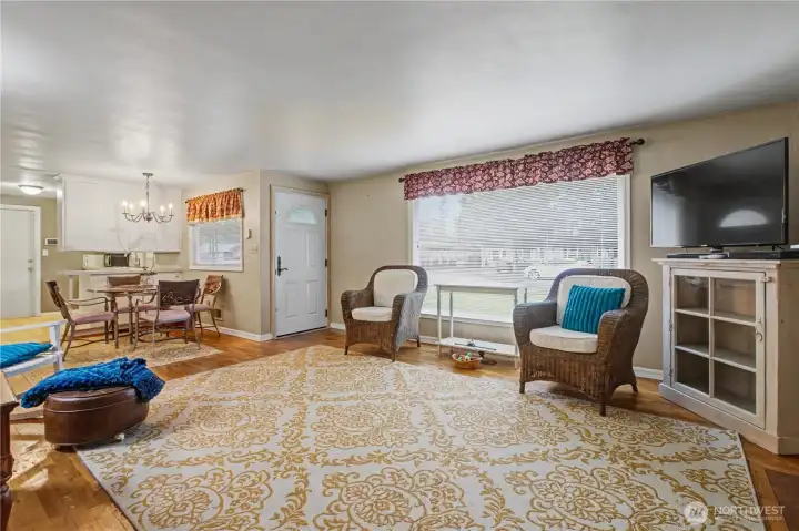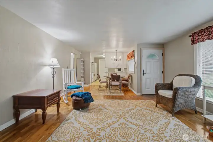 Charming one story 3 bed room home boasts mid century feel with modern amenities. Home features: original hardwood floors through out, newer roof (they believe 2-5 years old), central gas forced air furnace with AC, wood burning fireplace, sun room, patios, and all appliances stay with the sale! Site features: large fully fenced backyard with drive in access, driveway and street parking, garden space, likely ADU potential. Location is perfect. Close to shopping, restaurants, parks, schools, I-5, only 15 minutes to JBLM.