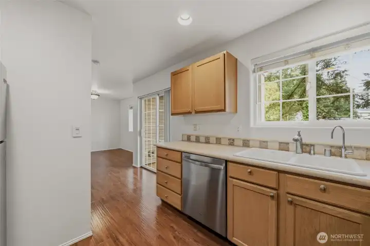 Peaceful, park-like living is yours at Cimmeron! Tucked in a quiet community just moments from all the modern amenities, this townhome-style condo lives large! Step inside to a spacious living room with vaulted ceilings, wood-style laminate floors, & a cozy gas fireplace. Plentiful windows fill every space with great light any day of the year. Pick up takeout from a number of great spots nearby, or whip up delicious meals in the spacious kitchen, equipped with stainless steel appliances and abundant counter/storage space. Hosting is a breeze in the roomy dining area w/ easy flow onto your private deck for leisurely summer BBQs or happy hour. 2 generously-sized bedrooms are on the upper level, including a spacious primary w/ dual closets & ensuite bath. A 3rd bed on the lower level is great as a home office or separate space for guests. Private garage parking, an addl off-street space, + in-unit laundry included. Small HOA w/ 100% owner occupancy. Come home to this tight-knit community & serene setting, & take advantage of all that comes with the coveted Edmonds lifestyle: access to charming downtown amenities, 5-star dining, Mountlake Terrace light rail, I-5, parks, beaches & more!