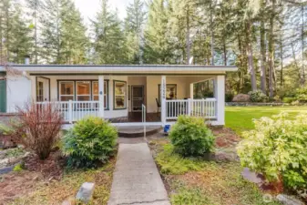 Nestled in a quiet cul de sac, you'll discover this spacious inviting 3 bed, 2 bath home. Approx 2,400 square feet of open concept living on 2.43 ac of a serene, park-like setting. A charming covered front porch greats you. Enter a spacious Family Rm area featuring a cozy wood-burning fireplace and vaulted ceilings, ideal for relaxing evenings or gatherings. The large kitchen is designed for both function and comfort, with ample cabinetry, generous counter space, pantry and a bright eat-in dining nook. Adjacent to the kitchen, a formal dining area is perfect for hosting special occasions, and a formal LR . The primary suite is a peaceful retreat, boasting a spacious bathroom and a walk-in closet for ample storage. Enjoy seamless indoor-outdoor living with a covered back patio, perfect for morning coffee or outdoor entertaining. Additional highlights include a detached two-car garage with a custom 750 sqft shop for hobbies or storage, an additional garage shed for your lawn care /garden items and meticulously maintained grounds that enhance the home's tranquil, private setting. Experience comfort, style, and functionality in a desirable location, offering a rare opportunity for serene living with all the amenities you desire. Close to shopping, easy access to Hwy .