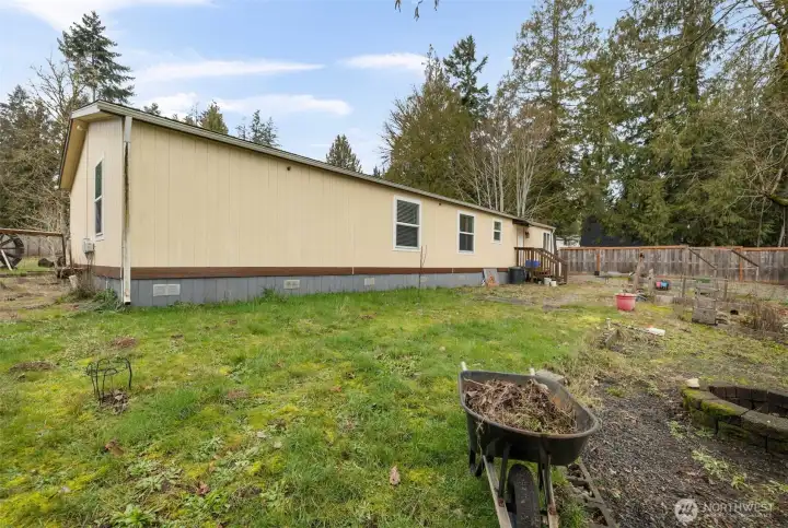 Rare LARGE 4-bedroom rambler in sought-after Shorecrest! This light-filled home features over 1800 square feet of open-concept living with vaulted ceilings and expansive windows that bring the outdoors in. The kitchen with island offers the perfect 'work triangle' and the spacious primary suite offers a luxurious 5-piece bath and generous walk-in closet. There are 3 more bedrooms and another full bath mean there's plenty of room! Recent updates provide peace of mind, including newer carpet, laminate flooring, exterior doors, front porch, gutters, water heater and dishwasher (2021), plus a new septic pump motherboard (2020). Enjoy the fully fenced backyard—perfect for entertaining or relaxing—complete with an inviting fire pit. Fresh gravel parking and an additional 2-car carport provide ample space for vehicles or recreational toys. Experience affordable living with exceptional community amenities: private beach access, boat launch, clubhouse, saltwater swimming pool, covered BBQ area and neighborhood parks. A rare opportunity to own a move-in-ready rambler with space, updates and lifestyle—welcome home!