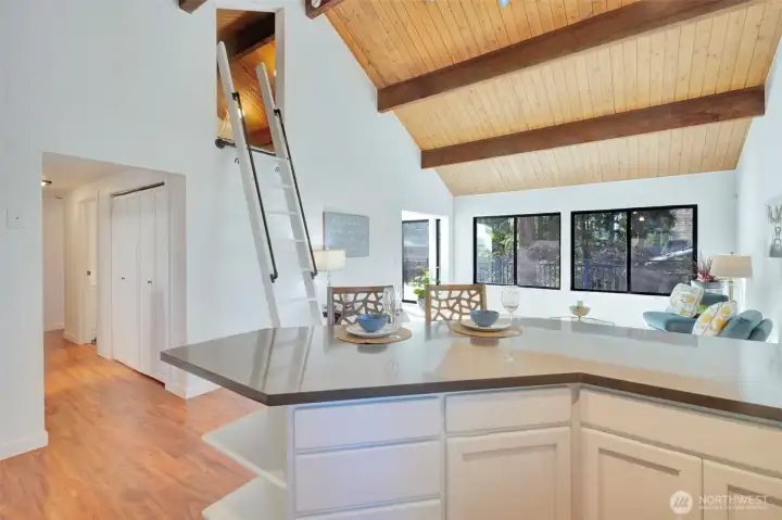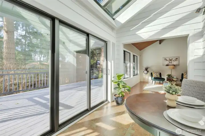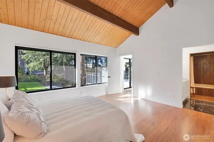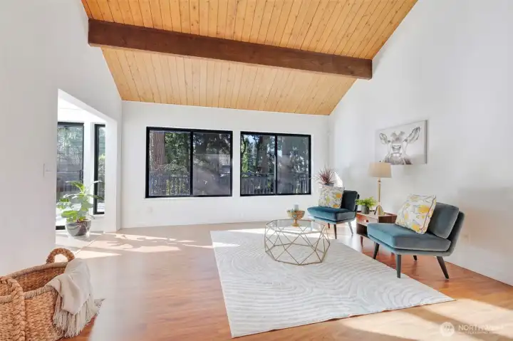 Welcome home! From the moment you arrive, the beautifully manicured lawn and inviting entry set the tone for this Northwest-inspired retreat. Step inside to soaring ceilings accented with stunning solid wood millwork that reflects the character and charm of the Pacific Northwest. The open-concept living, dining, and kitchen spaces are designed for effortless entertaining, featuring laminate flooring, quartz countertops, and newer kitchen appliances.Just off the main living area, a light-filled sunroom with skylights creates the perfect flex space—ideal for relaxing year-round—with access to the wraparound porch and convenient connection to the primary suite. The primary retreat offers a spa-like soaking tub room and a unique connecting door to the second upstairs bedroom, perfect for an office, nursery, or additional sitting area.Downstairs, you’ll find a second bedroom, full bathroom, and spacious rec room—great for guests or multi-generational living. Additional highlights include a two-car garage with newer garage doors, a mini-split system for efficient comfort, and a 40-year roof installed in 1999.Enjoy a fully fenced, wooded backyard offering privacy and space to unwind—all with NO HOA. Located in desirable Fircrest, you’ll have access to a community pool, golf course, and country club amenities.A rare opportunity to enjoy comfort, character, and community all in one!