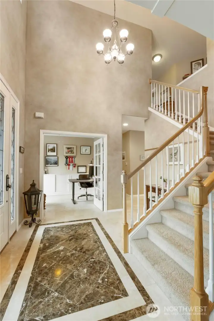 Welcome to the desirable Fennel Ridge community! Situated on an expansive 15,563 sq ft homesite, this beautifully maintained 2-story home with 4 car garage offers exceptional space, quality finishes, and thoughtful upgrades throughout.A welcoming front porch with classic columns and rock accents sets the tone for the impressive interior. Step into a stunning travertine entry featuring a designer marble inlay, with travertine flooring continuing through the kitchen, powder room, den, and laundry room. The spacious kitchen is designed for both everyday living and entertaining, showcasing quartz countertops, stainless steel appliances, double ovens, and a large island with cooktop. Formal living and dining rooms feature extensive trim and custom woodwork, with a coffered ceiling adding architectural elegance to the dining room. The family room is anchored by a cozy gas log fireplace, while French doors open to a private den with built-in cabinetry. Upstairs you’ll find four spacious bedrooms plus a versatile bonus room. The primary suite offers a cathedral ceiling, a large ensuite bath, and a generous walk-in closet. Outdoor living is equally impressive with a huge rear patio, complete with gazebo (furniture included), fire pit, and barbecue—perfect for entertaining. The fully usable yard features a 12-zone sprinkler system and hard-wired landscape lighting. 4-car garage with soaring 12 foot ceilings, central air conditioning, built in vacuum system.