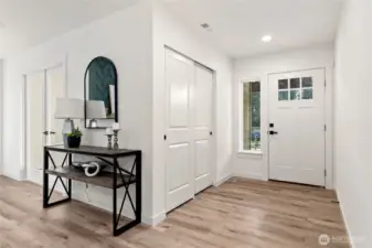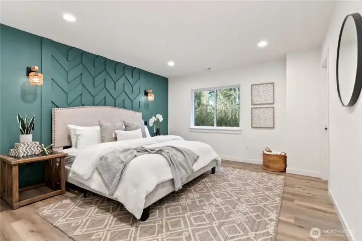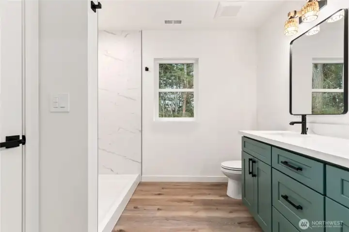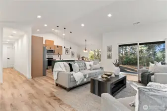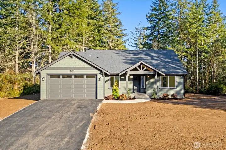 New Construction in Lakebay! Discover the perfect blend of privacy and coastal charm on this level 2.5-acre lot in the serene Joemma Beach Farms community. Set on paved streets with a private neighborhood trail leading directly to Joemma Beach State Park, this beautifully crafted 3-bedroom, 1.75-bath rambler with a bonus room/office offers peaceful living surrounded by nature. Step inside to an open-concept layout with vaulted ceilings, accent paneled walls, and modern LED lighting throughout. The spacious great room showcases a stunning stone surround fireplace with designer accent paneling, creating a warm yet sophisticated focal point. The kitchen is thoughtfully designed with quartz countertops, stylish backsplash, and ample cabinetry, perfect for everyday living and entertaining. The primary bedroom is a true retreat, featuring beautifully designed wall paneling with elegant sconce lighting that adds warmth and character. The primary bath offers a spacious tiled shower for a sleek, spa-inspired feel. Generous secondary bedrooms provide comfort and flexibility, while the bonus room is ideal for a home office, flex space, or guest retreat. Stay comfortable year-round with A/C. Relax on the covered back patio overlooking your expansive 2.5-acre property. Plenty of space for RVs, boats, and extra parking. A rare opportunity to own brand-new construction in a private setting. Just minutes to Gig Harbor and Key Center amenities.