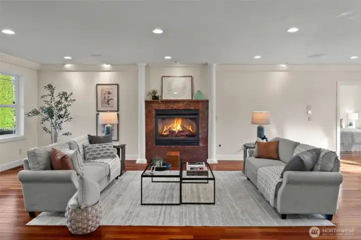 This Holly Woods Estate offers quality, privacy, and timeless design in one of the most peaceful, walkable and convenient Olympia neighborhoods. This 3+ bedroom, 4,479 sf traditional home sits at the end of a tree-lined lot on almost a 1 acre lot. Bordered by 40+ acres of neighborhood reserve, open space with park, trails, and pond views. Feel the quality of this home immediately - stone counters and floors. Brazilian cherry floors. Custom millwork. Three gas fireplaces - the list goes on! Off the entry, the great room anchors the home and flows into a chef’s kitchen with statement stone island, walk-in pantry, skylights, vaulted ceilings and professional-grade appliances. Off the kitchen, formal and informal spaces include a dining room, den, and main floor jr. suite. The main floor ensuite provides flexibility for guests or multigenerational living. Upstairs, the primary suite features vaulted ceilings, a double-sided fireplace, spa bath with jetted tub, wet bar, private office, and balcony. Additional primary suite upstairs, 3rd bedroom and full bathroom - plus bonus room. Outside, enjoy the native and specialty plants, garden space and orchard: walnut, pear, apple, plum, four varieties of fig, quince, and persimmon trees. A 3-car garage, plus a 4th garage on a second driveway - this could be an gym, or outdoor entertaining space. Remodeled and expanded in 2006. Minutes to town, I-5, 9 minutes to St Peters Hospital and a short 20min JBLM commute. Welcome home!