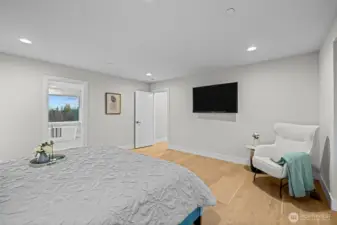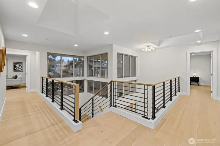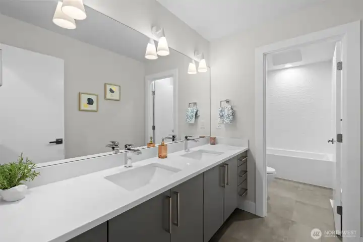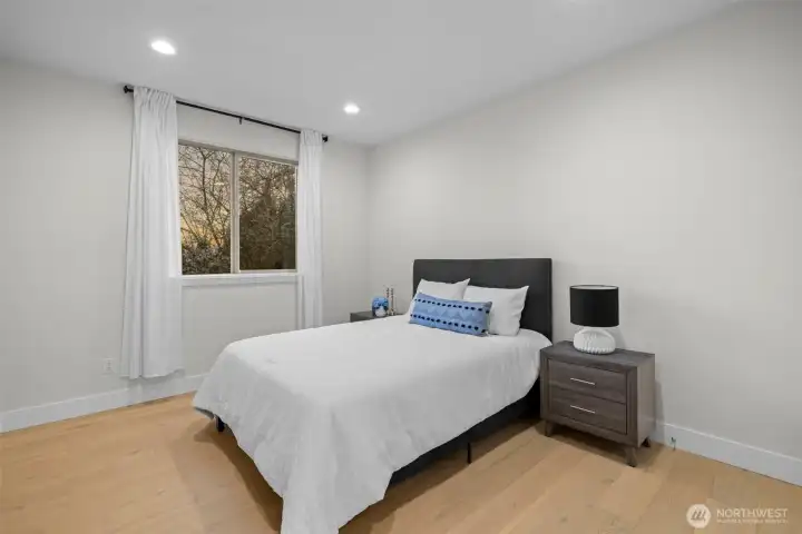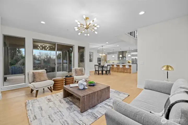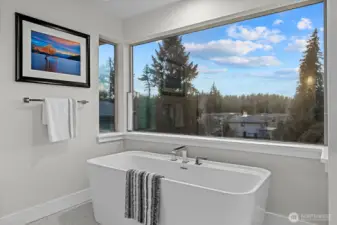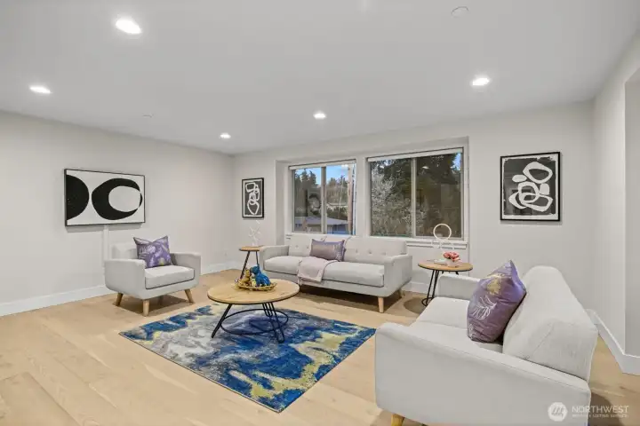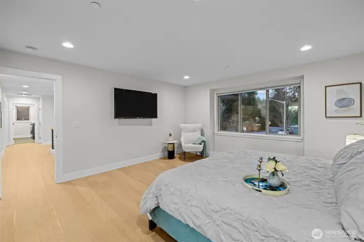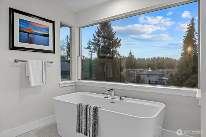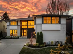 LIVE IN LUXURY in this 2021 custom built Merit home offering 5BD | 2.75BA | 3,190 SF of elevated, light-filled living. Soaring 9’ ceilings, wide-plank hardwoods & dramatic east/west exposure pour sunshine through oversized windows, creating a warm yet refined ambiance throughout. The stunning great room centers around a cozy gas fireplace, seamlessly flowing into an entertainer’s dream kitchen featuring a striking 10’ quartz island, sleek white soft-close cabinetry, quartz counters, walk-in pantry & premium SS GE Café appliances. The main-level guest suite with ¾ bath & walk-in shower offers ideal flexibility for visitors. Upstairs, escape to the luxury owner’s retreat showcasing a true spa-inspired bath with SunTouch heated floors, freestanding soaking tub, dual rain shower, double quartz vanities & under-cabinet lighting—your own private sanctuary. Three additional spacious bedrooms plus an expansive bonus/media/office room provide endless versatility. Dedicated laundry room with custom cabinetry & utility sink adds convenience. Year-round enjoyment awaits on the covered patio complete w/gas fire pit, gas BBQ hookup & built-in Infratech heaters, all overlooking a fully fenced backyard. Smart home integration, SimpliSafe security system, A/C & 2-car garage with EV charging elevate everyday ease. Ideally located mins to Totem Lake, Downtown Kirkland, Juanita Beach & Park, premier shopping, dining & major tech hubs—this is modern luxury living at its finest.