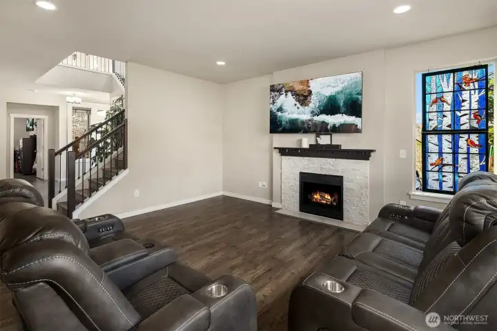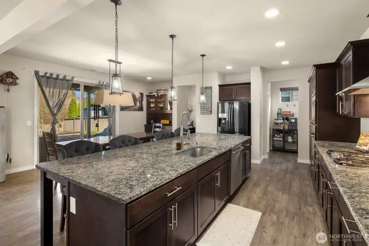 Welcome to Spring Haven! This spacious 5-bedroom home features an open-concept design built for modern living. The kitchen is equipped with granite countertops, a large island with seating, stainless steel appliances, and flows seamlessly into the inviting living room with gas fireplace, creating a natural space for gathering and entertaining. A main-floor bedroom offers flexibility for guests or additional living space, while a private office nook just off the kitchen provides a convenient work-from-home setup. Upstairs, you’ll find a generous bonus room, upper-level laundry, and an expansive primary suite complete with a 5-piece bath and walk-in closet. Central A/C ensures year-round comfort. Step outside to a fully fenced backyard backing to greenbelt for added privacy, featuring a covered patio and wood-burning fireplace ideal for entertaining in every season. All just minutes from I-5 and Mill Creek Town Center with convenient access to shopping, dining, and daily amenities.