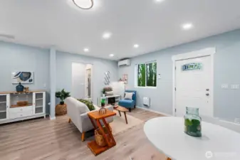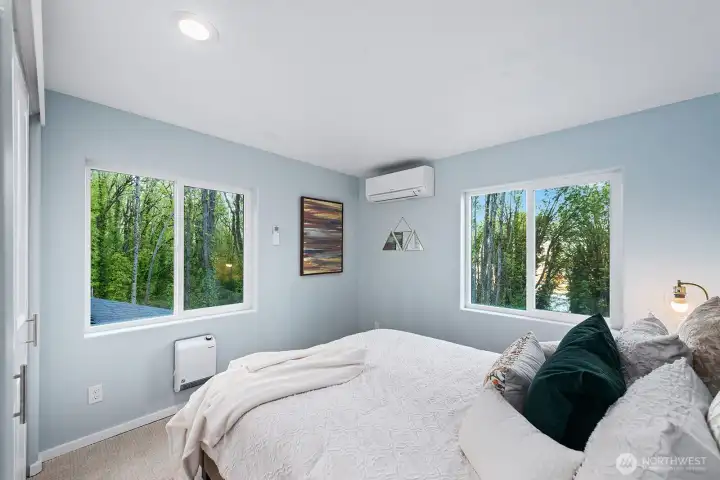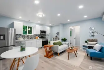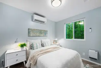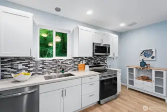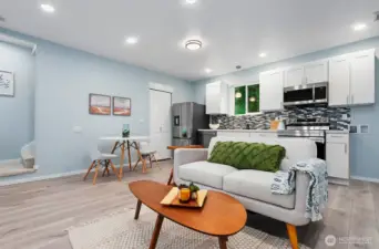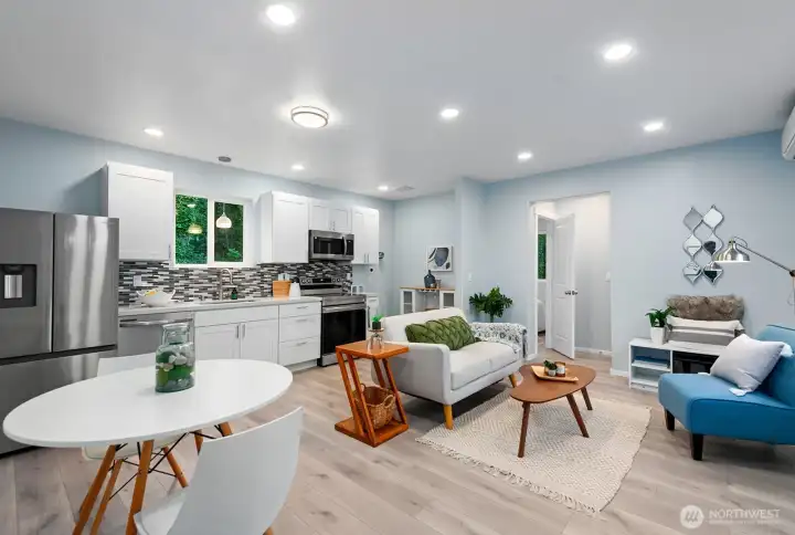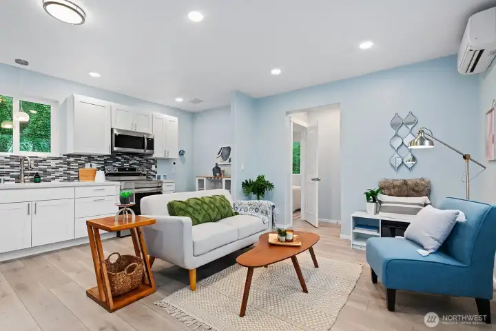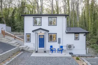 Nestled in West Seattle, this standalone home blends city living w/tranquil seclusion. Surrounded by a lush greenbelt and spacious patio, this 3-bed, 1¾-bth gem features thoughtfully designed living space. The main-floor bedroom has an oversized walk-in ¾ bath w/luxurious rain shower and fold-up seating, while upstairs offers two more bedrooms and a full bath. Comfort meets convenience: AC splits/electric heating, outdoor 220V plug for EV. Stylish kitchen: White cabinets, Quartz countertops, and premium stainless appliances, fridge, range w/outside exhaust. Located in a serene neighborhood, minutes to Alki Beach, I-5, Water Taxi to downtown, schools, and North Admiral shopping—a perfect mix of urban accessibility and peaceful retreat.