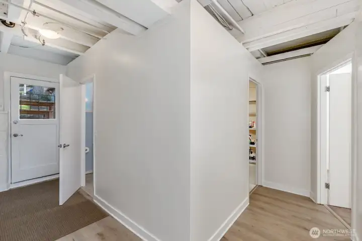 Welcome home to this beautifully updated 2,042 sq ft residence offering 5 bedrooms and 1.75 baths with a versatile, well-designed layout. You’re greeted by rich hardwood floors and a warm wood fireplace that flows seamlessly into a bright, open living and dining area. The kitchen features stainless steel appliances and opens to a spacious deck, perfect for entertaining or relaxing outdoors. The main level includes three bedrooms, including a comfortable primary, while the finished lower level offers two additional bedrooms, a bath, laundry area, and a generous second living space with its own wood fireplace. Outside, enjoy fruit trees, raised garden beds, a patio ideal for gatherings, a cozy firepit, and an outbuilding for extra storage—all complemented by a brand new roof and gutters.