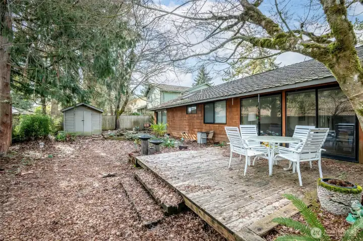 Mid century modern vibes meet timeless comfort in sought after Fairwood Greens! This over 2,000 sq ft 4 bed, 2 bath home features solid wood interior doors, a cathedral ceiling living room with skylights and a cozy wood burning stove. The spacious primary suite includes its own private bath and a sliding door that opens directly to the backyard. Thoughtfully designed to flow seamlessly to outdoor living with 4 slider doors leading to a flat backyard, deck, tranquil water feature and shed. Enjoy the charming front courtyard, brick exterior accents, flex room, dining room and generous family room offering exceptional versatility and livability. RV and boat parking always a bonus and plumbed for AC. A comprehensive home warranty is included. Enjoy Fairwood Golf & Country Club within the neighborhood, a short distance to Fairwood Elementary, and just 2.5 miles to I-405 for an easy commute. The neighborhood offers recently updated parks, golf, walking paths & trails and security. Buyer to verify all information, welcome home!