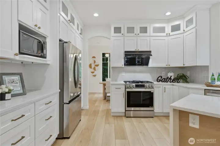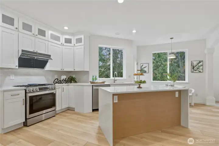 Northwest contemporary architecture paired with a high-end designer remodel defines this unforgettable Lakemont home. Meticulous attention to detail creates a refined atmosphere inviting you into the formal living and dining room, seamlessly connected to a stunning gourmet kitchen. The waterfall island, designer tile backsplash, gas cooktop, newer appliances, and abundant custom cabinetry provide both beauty and functionality. Retreat to the luxurious primary suite, thoughtfully designed to offer comfort and indulgence. Upstairs features three additional bedrooms and a full bath. A spacious bonus room showcases nature views and abundant natural light. The lower level is perfect for entertaining, complete with a gas fireplace and wet bar. An additional bedroom with a shower suffices multi-generational living or guests needs. Assigned office on main. Enjoy the dedicated deck and fully fenced, multifunctional outdoor space that provides serenity and privacy. New roof, new water heater, furnace and A/C 2023. No carpet. Rare opportunity to own a newer, luxury, turnkey home designed for comfort and functionality in one of the area’s most sought-after neighborhoods.