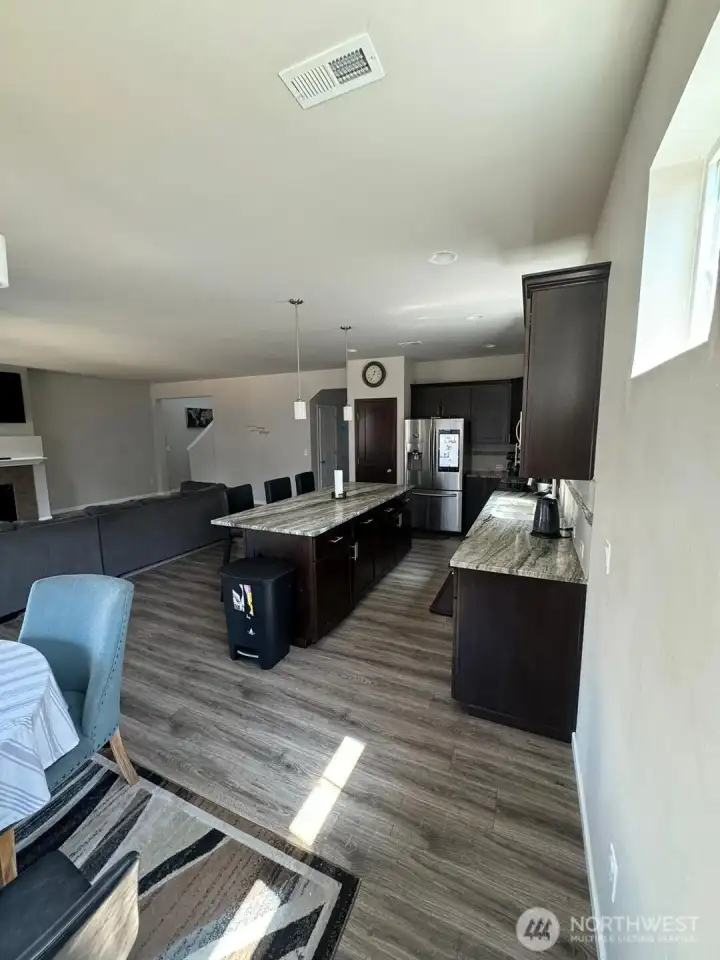 Gorgeous open concept great room for easy living in Tahoma Terra development. Stunning kitchen offer ample cabinetry with beautiful slab granite eating island, touch faucet, dining area and walk out to a covered porch. Cozy gas fireplace and main level flex room - formal dining, office space. The upstairs offers 4 bdrms up, laundry, PLUS large bonus room that could be a 5th bdrm. Large primary suite, 5 piece ensuite bathroom has radiant heat tile floors, large walk-in closet and remote controlled lighting. New LED lights throughout, and custom blinds - some are dual way close. Lovely, soft gray decor. All appliances stay, this home is turn key ready to move in! Great location closed to well maintained community park, Yelm, Yelm shopping, amenities nearby and easy access to east gate Ft. Lewis. This won't last long, show with confidence!