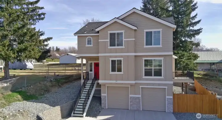 Be the first to live in this beautiful brand-new home! This 3-level design offers 3 bedrooms, 2.5 baths, and a bright open-concept living and dining area perfect for entertaining. The modern kitchen features quartz countertops, stainless steel appliances, and plenty of cabinet space. Durable LVP flooring and air conditioning provide comfort and easy upkeep. All bedrooms and the laundry area are conveniently located upstairs. The lower level includes a spacious 2-car garage with direct access to the main floor. One of two newly built homes side by side, with contemporary finishes and quality craftsmanship. Close to town, schools, and parks.