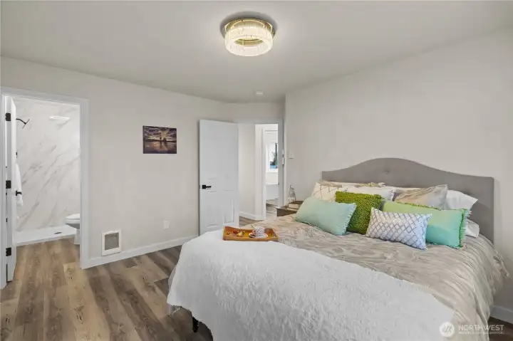 Pleasant urban living at its best! This beautifully remodeled 3-bedroom, 2-bath home with a 2-car garage, built in 1995, is move-in ready and filled with natural light. The spacious new kitchen offers abundant storage, sophisticated finishes, and stainless steel appliances—perfect for everyday living and entertaining. Both bathrooms are tastefully renovated. The primary suite features a private ¾ bath and a generous walk-in closet. Fresh interior and exterior paint give the home a crisp, modern feel. On clear days, enjoy views of Mount Rainier from the kitchen window or backyard. The fully fenced, spacious yard is ideal for relaxing, gardening, or gatherings. Located on a quiet, private dead-end street, this home offers peaceful living while remaining close to casinos, the city center, and major freeways. Down payment assistance programs available. Don’t miss this bright and charming home!