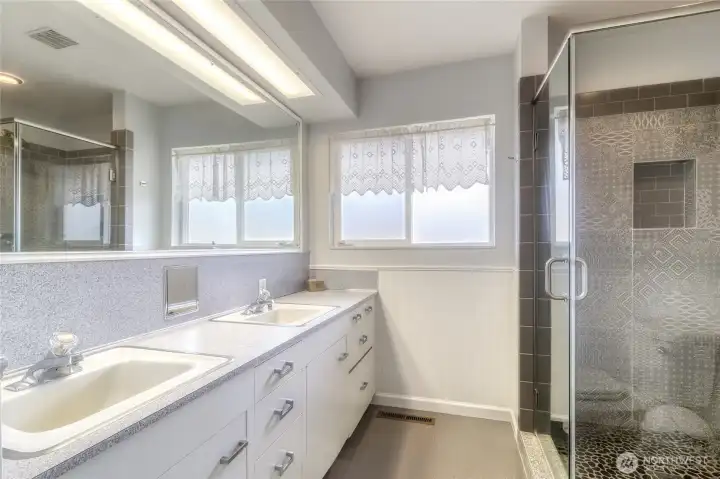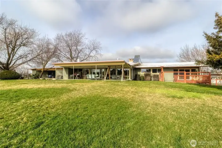 Nestled on a quiet street in College Place, this classic 1950s home offers timeless mid-century character with architectural lines reminiscent of Frank Lloyd Wright. Expansive windows capture sweeping views of the Blue Mountains, bringing in natural light and creating a seamless connection to the spacious acre lot & surrounding landscape.The eat-in kitchen features abundant counter space, perfect for both everyday living and entertaining. Thoughtful storage is found throughout the home, with built-ins and cabinetry in all the right places. An upstairs office provides flexibility and could easily function as an additional bedroom with the addition of a closet. Secondary bedrooms include custom built-ins, while the primary en-suite offers a generous dressing room/closet & bath with separate tub & shower. The lower level now includes a private apartment with a separate exterior entrance and kitchenette, offering excellent potential for guests, multi-generational living, or rental income. Extra space for storage or design another separate apartment. With its distinctive design, versatile layout, in-ground pool in 2020 and beautiful mountain views, this home presents a rare opportunity to invest in a unique property in Southeast Washington’s sought-after wine country.