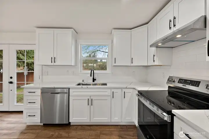 Welcome home to this beautifully and completely updated 4-bed, 2-bath gem! Step inside and fall in love with the stunning modern kitchen featuring quartz countertops, stainless steel appliances, and a stylish waterfall island that anchors the space perfectly. The spacious primary bedroom offers comfort and privacy with its own en-suite bath. Enjoy the durability and clean look of LVT flooring throughout, along with fresh interior and exterior paint that gives the home a crisp, move-in-ready feel. Outside, the large fully fenced (9000 sf) backyard provides room to relax, entertain, or play—plus a two-car covered garage with extra space for your toys or RV. This home has been thoughtfully renovated from top to bottom: new furnace, new roof, new electrical panel, new plumbing, new siding, new doors, and new double-pane storm windows. All work was completed with permits and inspections by the City of Tacoma, giving you peace of mind for years to come. Located just minutes from I-5, Tacoma Mall, restaurants, grocery stores, and everyday conveniences, this home offers both comfort and accessibility. Don’t miss the opportunity to own this beautifully updated property—your next chapter starts here.