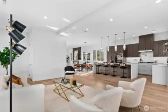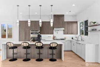 Not your average new construction. This elevated home was designed to stand apart. Perched above the Kent Valley with sweeping territorial views, this contemporary home delivers premium selections and intentional design rarely found in South King County. Flooded with natural light, the open-concept layout showcases wide-plank flooring, oversized windows, and a true chef’s kitchen featuring quartz countertops, a statement island built for gathering, custom cabinetry, and built-in appliances that elevate both style and function. The seamless flow from kitchen to dining and great room extends to an expansive elevated deck, perfect for entertaining above the valley. The spa-inspired primary suite offers dual vanities, designer tile finishes, and generous walk-in storage. Three additional bedrooms provide flexibility for guests, office, or bonus space. The oversized lower-level garage isn’t just parking, it’s opportunity. Create a home gym, workshop, studio, or future theater room. Professionally designed landscaping, durable exterior materials, and thoughtful storage throughout complete this standout home. Minutes to Kent Station, parks, and major commuter routes. Modern design. Elevated living. A rare opportunity.