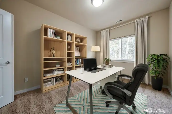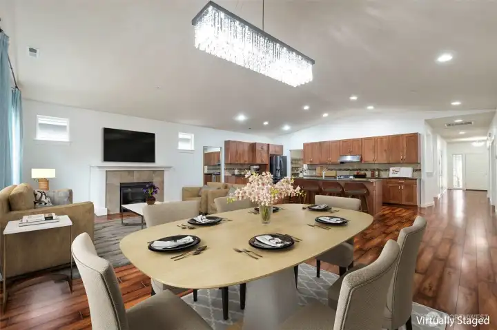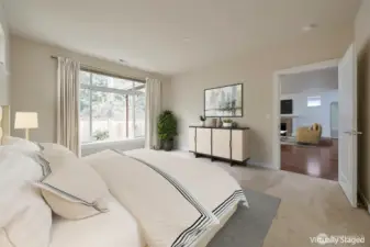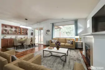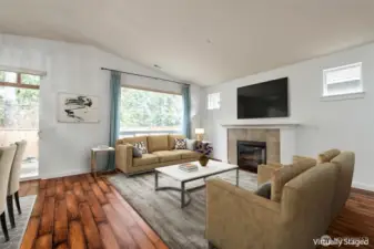 Gorgeous and impeccably maintained Craftsman rambler tucked on a quiet cul-de-sac in desirable Wood Grove at Fairwood. Situated on an approximately 7,500 sq ft lot, this light-filled 3 bed + den, 2.5 bath home features vaulted ceilings, rich hardwood floors, abundant windows, and a cozy gas fireplace. Open-concept layout with gourmet kitchen offering granite countertops, expansive island, stainless steel appliances, and walk-in pantry. Spacious primary suite with sitting area, walk-in closet, and five-piece bath. French doors lead to den/office. Fully fenced, beautifully landscaped backyard backs to greenbelt with covered patio for year-round enjoyment. Central A/C, two-car garage, and just a short stroll to park and trails. A private, move-in ready retreat!