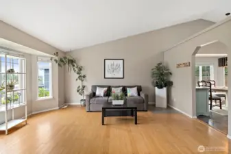 Welcome to this one-of-a-kind elevated rambler offering stunning Olympic Mountain views. This spacious single level home features vaulted ceilings and an open concept design connecting the updated kitchen with refreshed cabinetry to a light filled living room with bay window and skylights. The private primary suite includes a walk in closet and full bath. Enjoy a new roof, fresh paint, and air conditioning. Entertain on the oversized deck and pergola patio with gas firepit in a fully fenced backyard with no HOA. Turn the key and step into something truly special.