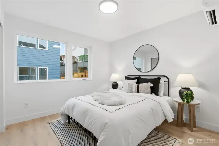 Sophisticated Ballard detached cottage offering 1,057sf of thoughtfully designed living space plus a heated 208sf garage/flex room. This 2-bedroom, 2-bath home features a dedicated office—ideal for remote work or creative pursuits. Soaring ceilings and generous windows flood the interior with natural light, while premium finishes elevate everyday living. Enjoy Bellmont cabinets, engineered hardwood throughout (no carpet), and heated floors in both bathrooms. Mini-split A/C in every room provides year-round comfort. The primary bathroom includes motion sensor lights and a dedicated bidet outlet for modern convenience. The heated garage offers flexible space for parking, storage, or a hobby room. Private backyard retreat with easy access to NW 65th dining and Downtown Ballard—88 Walk Score and 95 Bike Score. Quick routes to Golden Gardens and 15th/99 for SLU/Downtown commutes. Top-ranked schools!