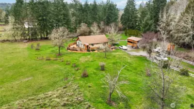 Out in the country on 5.7 usable acres, this property offers space, privacy, and flexibility. The 2-bedroom, 1-bath home features fresh laminate flooring and a wraparound deckâperfect for enjoying the peaceful rural setting.A gentle seasonal creek winds through the property, adding natural charm and enhancing the country feel. Numerous established fruit trees provide seasonal harvests, while the predominantly flat and usable land offers excellent potential for gardening, animals, additional outbuildings, or future expansion.The 4,000+ sq ft barn creates endless possibilities for livestock, equipment storage, workshop space, or hobby use. A newer roof on both the home and carport adds peace of mind.A versatile property ready for rural living with room to grow and make it your own.