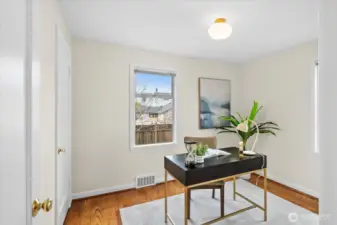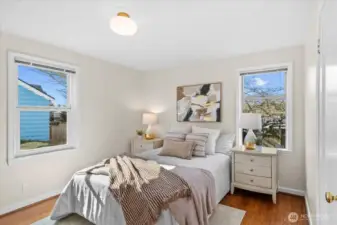 Welcome to the sought-after Sunset Hill neighborhood of Ballard. This beautifully maintained, thoughtfully updated and light-filled 4-bedroom home seamlessly blends timeless architectural character with refined modern comforts. Warm hardwood floors anchor the main living spaces, complemented by fresh interior paint and an inviting wood-burning fireplace that creates an atmosphere of understated elegance. The updated kitchen features new LVT flooring and flows effortlessly into a generous dining area designed for gathering. Two bedrooms and a full bath on the main level, while two more bedrooms and a half bath upstairs provide opportunity for a potential primary suite. Enjoy year-round comfort with a new heat pump which provides both heat and cooling. Step outside to a fully fenced, private west-facing backyard—perfect for relaxed summer evenings and effortless outdoor entertaining. The clean 700 sq ft unfinished basement offers an impressive ceiling height, laundry hookups, and direct backyard access—an exceptional opportunity for future customization. Ideally located near beloved neighborhood favorites including Larsen’s Bakery, Café Munir, Golden Gardens Park, boutique shops, the Ballard Farmers Market and the historic Ballard Locks. Highly regarded Seattle Public and private schools nearby. This home has been pre-inspected and sewer scoped for peace of mind.