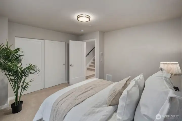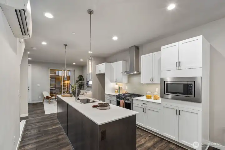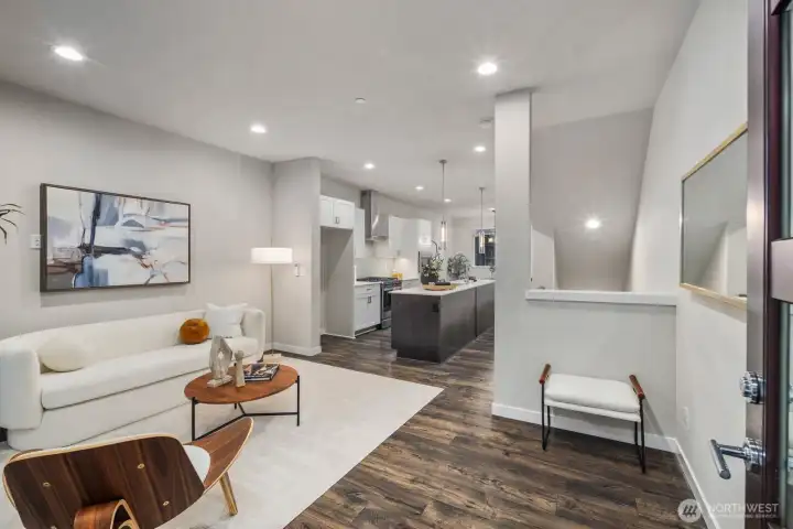 Welcome to The Towns on 145th like-new construction in a prime Shoreline location. This modern 3-bedroom, 2.5-bath home offers 1,803 sq ft of thoughtfully designed living space with an open-concept main level, island kitchen featuring quartz counters, stainless appliances, tile accents, and large windows. Upstairs includes three spacious bedrooms, a primary suite with ensuite bath and large walk-in closets. Unit D shines with a main-floor front patio, deck off the second bedroom, and primary bedroom deck. Enjoy HOA-maintained exteriors, 4-Star Built Green construction, and a tandem 2-car garage with extra storage. Located just ΒΌ mile to light rail in desirable Shoreline with top-ranked schools.