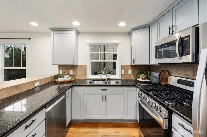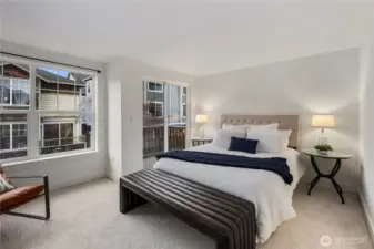 Stellar Ballard location paired with like-new condition. This 3-bedroom, 2.5-bath home offers a turnkey experience with modern finishes and timeless comfort, including newly renovated bathrooms, new carpet, full interior paint, and updated light fixtures. Lives larger than its listed square footage plus it has an additional 230-square-foot dedicated garage. The unit features open living spaces filled with wonderful natural light in every room. The spacious living room easily accommodates a full dining table and is anchored by hardwood floors and a cozy gas fireplace. A perfect place to entertain or enjoy a restful evening at home. Upstairs, enjoy two en suite bedrooms, including a generous primary suite with a walk-in closet and private deck. A second private deck off the main living level, an additional half bath, and a fully fenced patio and side yard create multiple outdoor spaces with room to garden, relax, and host. Stainless steel appliances. The lower level features a dedicated office off the patio, ideal for working from home or a quiet retreat. No HOA and a great community of neighbors add to the appeal, all while offering a Walk Score of 93, just moments from Ballard’s best, including Golden Gardens, the Burke-Gilman Trail, shops, dining, and more.