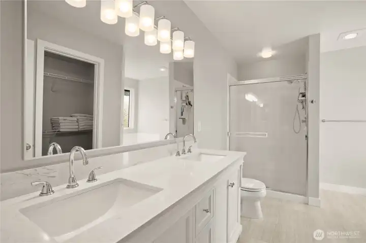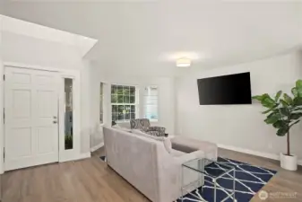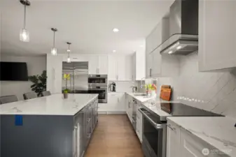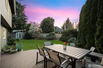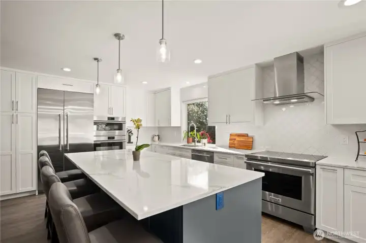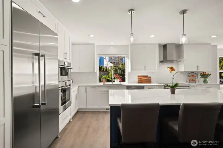 This beautifully renovated home blends modern comfort with effortless PNW living. Step inside to a light-filled interior where expansive windows flood the home with natural light, creating a warm and inviting atmosphere throughout. The heart of the home is a stunning chef’s kitchen, thoughtfully designed with shaker cabinetry, quartz countertops, and an expansive island, perfect for gathering. A wine fridge, double ovens, and premium-grade appliances elevate the space - ideal for both everyday living and entertaining. Unwind in the cozy living room centered around a gas fireplace, or step outside to enjoy PNW summers in your flat, fully fenced backyard - complete with a deck designed for dining, relaxing, and hosting. Upstairs, retreat to your spacious primary suite featuring an oversized 5-piece ensuite bath and walk-in closet. Three additional bedrooms and a beautifully updated full bath provide flexibility for guests or household needs. Newly renovated bathrooms throughout add a fresh, modern touch. With a dedicated office space perfect for working from home, central A/C for year-round comfort, and thoughtful upgrades at every turn, this home is a must-see! All this, plus located within the highly sought-after Lake Washington School District.