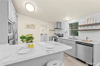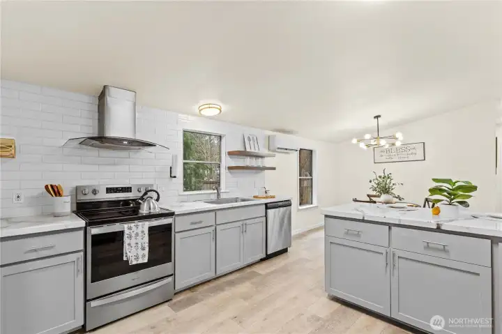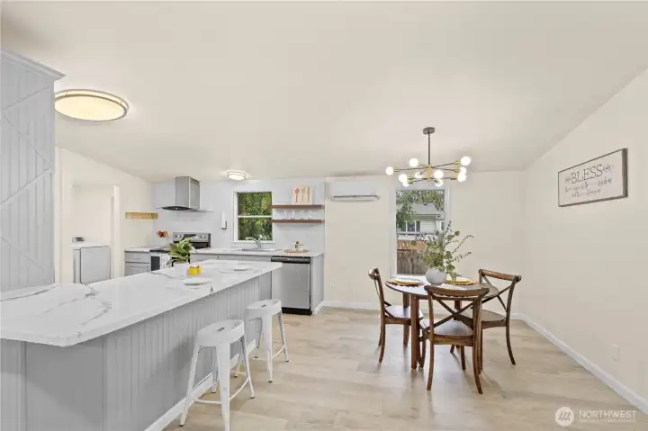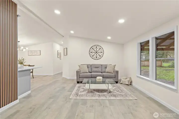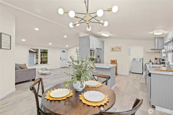 Welcome to your peaceful retreat in Scenic Shores! This refreshed 3-bedroom + den/office, 2-bath home offers vaulted ceilings and a convenient, functional floor plan designed for comfortable everyday living. The open-concept living area provides excellent natural light and a seamless flow between the living, dining, and kitchen spaces — ideal for both entertaining and daily life. The home has been recently updated with new interior paint and new flooring throughout, giving it a clean, modern feel. A newer roof adds additional value and peace of mind. The flexible den/office space is perfect for remote work, guests, or a playroom. Enjoy outdoor living with a covered front porch and a fully fenced yard, offering privacy and space for pets, gardening, or gatherings. Located in the desirable Scenic Shores community, residents enjoy access to Lake Lawrence, including private beach access, boat launch, and community park. Conveniently situated just minutes from Yelm schools, shopping, dining, and with an easy commute to JBLM, this property offers the perfect balance of lifestyle, location, and comfort.