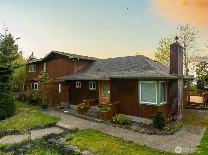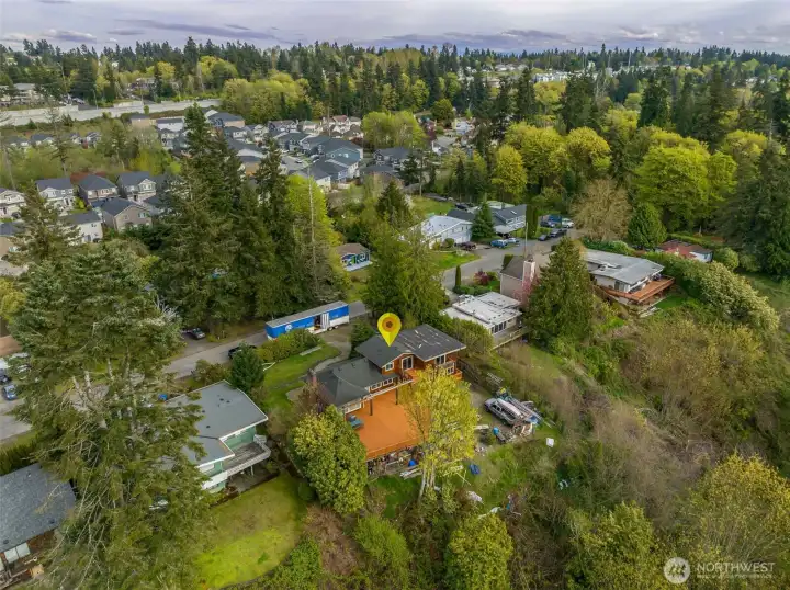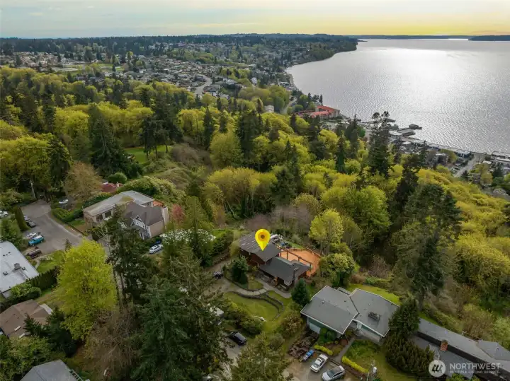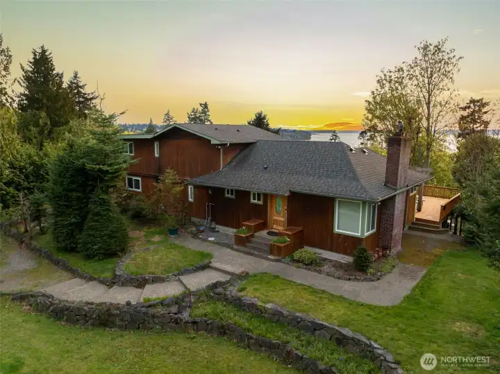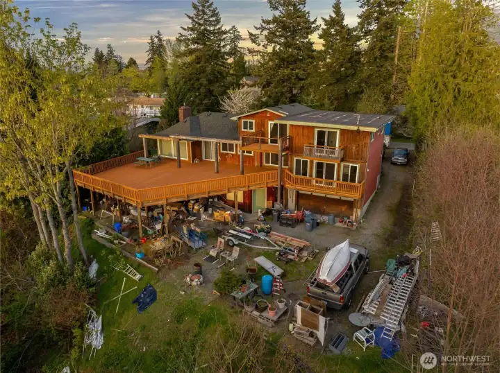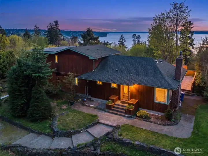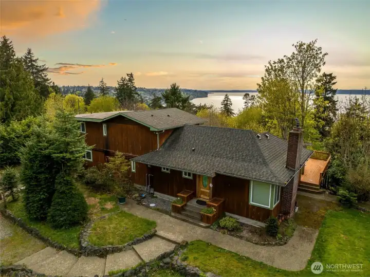 Rare opportunity to create a one of a kind property on nearly an acre on a quiet, dead end street, offering sweeping water views and direct privacy backing to public land. The home is positioned on a dramatic, sloping site that enhances both outlook and seclusion, while naturally preserving sightlines and protecting the surrounding landscape. The existing residence is ready for a comprehensive renovation or reimagining, presenting an ideal canvas for builders, investors, or end-users with vision. While a portion of the lot is steep, the usable footprint offers ample space to design a custom view home that maximizes light, views, and indoor-outdoor connection. The lower level features a fully separate ADU with 1 bedroom and 1 bathroom, thoughtfully remodeled in 2021, perfect for rental income, guest quarters, or extended living during renovation. With captivating water views, a private natural setting, and significant upside potential, this is a rare opportunity to bring a truly special property to life.