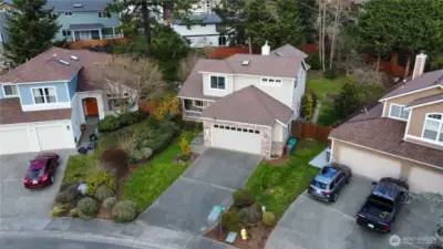 Immaculate two-story Dream House in a quiet cul-de-sac on a large 13,068 sq ft. lot. This home features: an open concept main floor with new flooring and is freshly painted. Enjoy the formal living room and dining room. Spacious and bright kitchen has an atrium window overlooking the back yard, adjoining family room with a gas fireplace and new recessed lights. The kitchen features a new refrigerator and new stove, beautiful white woodwork, quartz countertops and a spacious peninsula. An added flex space can be used as an office or guest room. The main floor has a 1/2-piece powder room. The 2nd floor features, a large Primary bedroom with a 5-piece bath and walk in closet. 2 additional bedrooms and a second full bathroom. The house has cedar siding and a 50 Year Presidential roof. The back yard is private and fenced in and features a large entertaining deck. The 2 1/2 car attached garage is spacious with built in storage shelves. The crawl space was just cleaned and inspected. This home has been beautifully maintained. Easy access to I-5/ 405, rapid transit, shops and restaurants. This area has the Zip Car which will drive people to the light rail for $2.50