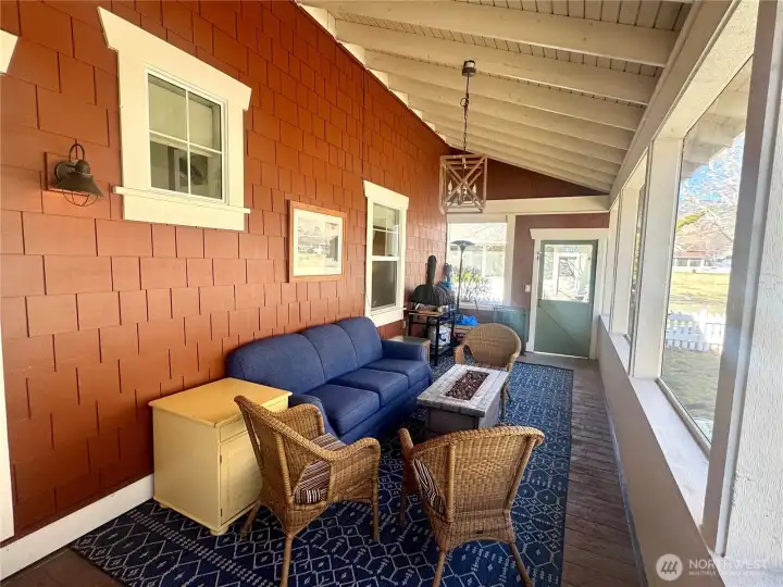 Comfy Wicker furniture on patio just steps from the Lake. Did you know that Lake Osoyoos is known one of the best swimming & boating lakes in the Pacific Northwest