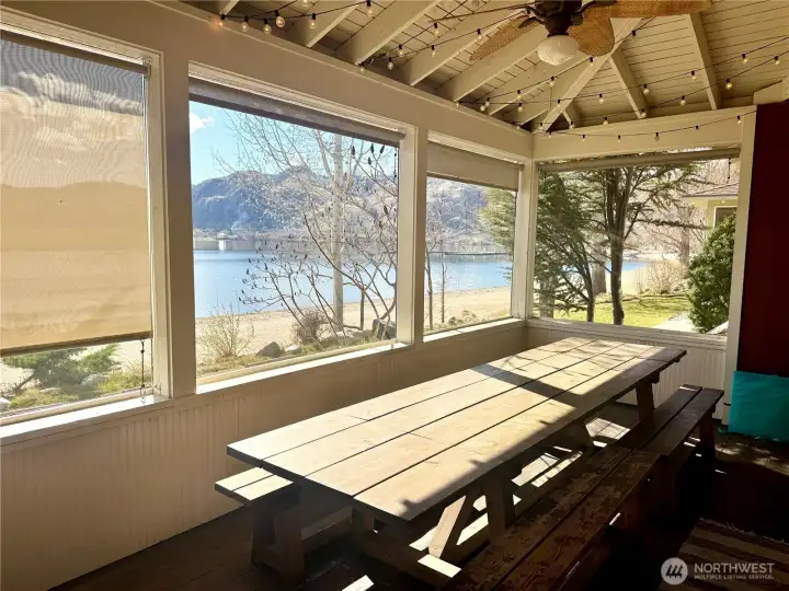 Very Desirable 4 bedroom BEACHFRONT Cottage at Veranda Beach on Lake Osoyoos. Recently and tastefully renovated. Fabulous kitchen with generous center island, custom Cabinets quartz countertops & vinyl plak flooring. Spectacular 11 foot triple slider opens to Veranda and Lake. There is 550 sf of wraparound Veranda, for ideal outdoor living. Distinctive lighting & decor, Art, 12 foot Dining Table, and all funishings are included in Sale. So, you can move right in & start enjoying your vacation getaway Four spacious bedrooms sleep 16. Upper floor includes 2 large bunk rooms with 8 bunks and 2 queen beds, plus a remodeled Bath, new plumbing and light fixtures, Luxury vinyl plank flooring and Euro-glass shower doors. Lakeside patio with rattan furniture and a gas firepit is great for entertaining. Location, Location with Southern exposure, just steps to the Saltwater pool, Fitness center, volleyball & playground. If you are boater ask about the new state of the art Marina on what is considered one of the finest boating & swimming Lakes in the Pacific Northwest. Plus the reknowned Okanogan region is minutes away. There are dozens of wineries within a 30 minute drive! And 100+ within a 1 hour drive. Very popular vacation rental with established repeat renters. If you have been looking for a special Lakehome. Be sure to check out