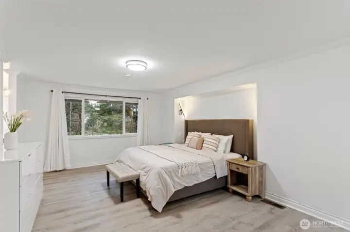 Beautifully updated single-family home in a prime Mill Creek location! Recently refreshed with new exterior paint, a newly finished back deck, and luxury vinyl plank (LVP) flooring throughout, this home is truly move-in ready and designed for modern living.The bright living room features vaulted ceilings, creating an open and airy atmosphere filled with natural light. The spacious kitchen is perfect for entertaining, showcasing a huge center island, upgraded kitchen vent, generous counter space, and a functional layout that flows seamlessly into the main living areas. Step outside to the finished back deck—ideal for summer BBQs, morning coffee, or relaxing evenings.Located just minutes from shopping, dining, scenic trails, parks, and Mill Creek Town Center, this home offers the perfect blend of comfort, style, and convenience with easy access to major commuter routes. A fantastic opportunity to own a beautifully updated home in desirable Mill Creek Country Golf community with top-rated schools!