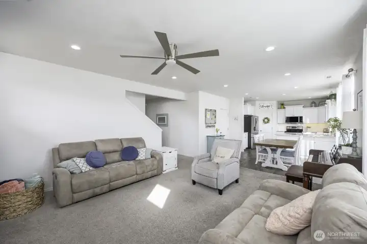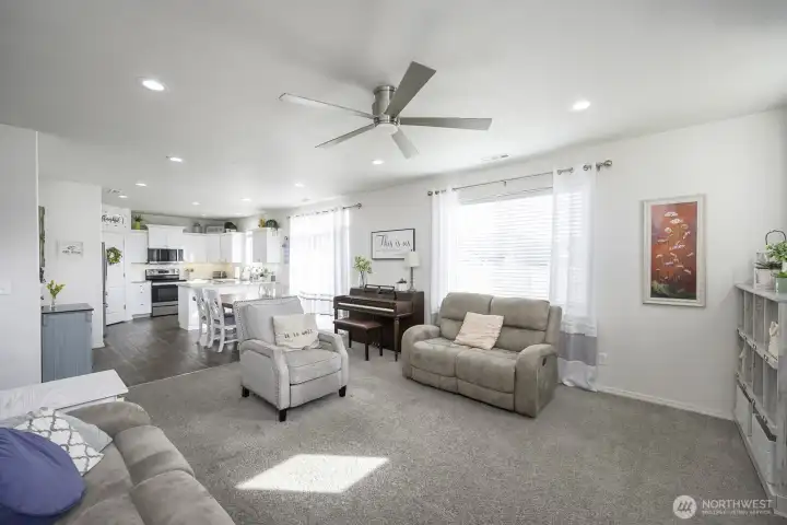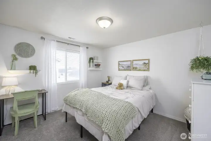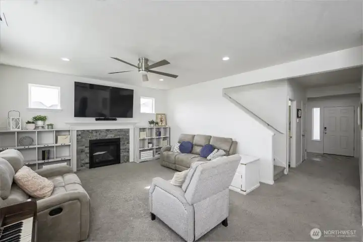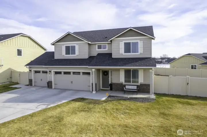 This beautiful 5-bedroom home (one currently used as a home office) offers a spacious and functional open floor plan perfect for everyday living and entertaining. The great room features a cozy fireplace and flows seamlessly into the open kitchen with granite countertops and a walk-in pantry. The main floor includes a convenient half bath. Upstairs you’ll find three spacious bedrooms, a full bathroom, and a dedicated laundry room. The large primary suite provides a relaxing retreat with double sinks, a soaking tub, and a separate shower. Step outside to an extra-large, fully fenced yard featuring a large back patio plus a second patio already set up for a hot tub — ideal for relaxing or hosting gatherings. Located near Blue Heron Park with a boat launch, swimming beach, public fishing dock, and activity trail, this home offers easy access to outdoor recreation and everyday convenience.