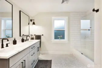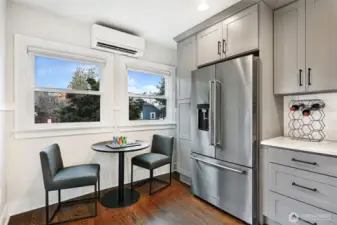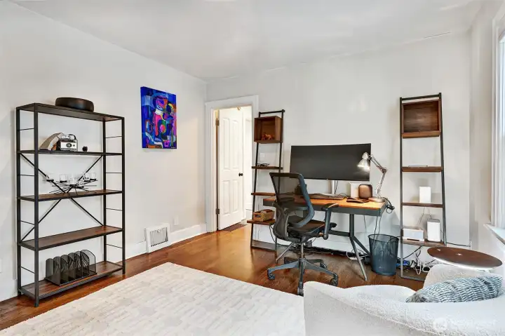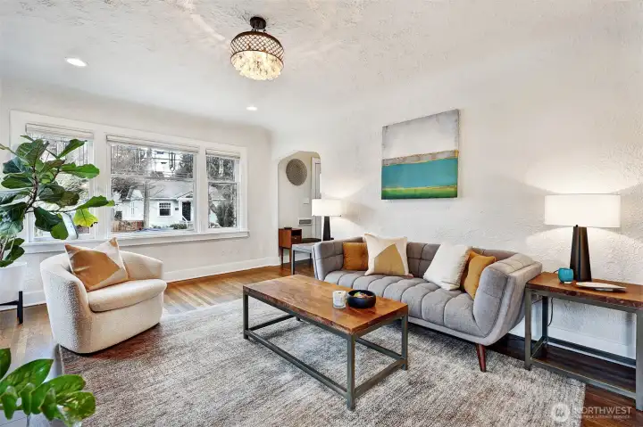 All the right touches in this thoughtfully remodeled Green Lake Craftsman - just move in and enjoy! From the entry foyer with closet to the inviting living room with fireplace, the home feels warm and welcoming. High-quality finishes are seamlessly blended with classic old world architectural details, including archways, cove ceilings, hardwood floors, original leaded glass windows, and built-ins. The remodeled chef’s kitchen features an island, stainless KitchenAid appliances, quartz countertops, and generous cabinet and workspace - all open to a spacious formal dining room. A dreamy second-floor primary suite offers a walk-in closet, maple flooring, and a spacious ensuite bath with double sinks. Main floor bedroom and flexible den offering options for work, study, or additional living space. Bathrooms on every level have been updated. The fully finished lower level includes a bedroom, half bath, built-ins and flex space for office and cozy reading/media/play space. Stay dry on rainy days with lower level access from attached garage with inside "drop zone" for coats and bags. Peaceful, landscaped and fenced backyard includes irrigation and lighting, a flagstone patio, and alley access. Spacious garage with storage room and driveway parking. Updates include: heat pump, air conditioning, new roof and tankless hot water and more. Easy in-city living with a convenient commute and close proximity to shops, restaurants, PCC, RapidRide - and just blocks to Green Lake!