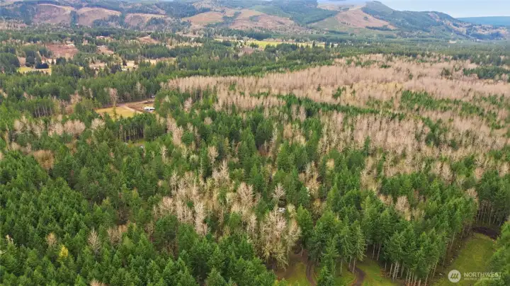 40-acre parcel in rural Rainier zoned RRR 1/5 (Rural Residential), consistent with surrounding 5-acre residential properties. Heavily forested with rolling topography and mature timber, offering privacy, flexibility, and long-term potential. Located off a private dead-end road with electricity available at the street. Elevated interior areas and potential level sections may support multiple homesite options, subject to buyer feasibility and county approval. Legal access provided via existing private road. Buyer to verify all information, access, feasibility, utilities, and intended use. Conveniently located near Yelm and within reasonable distance to Mt. Rainier and surrounding outdoor recreation.