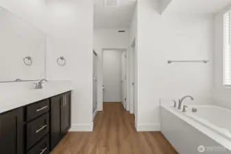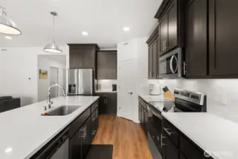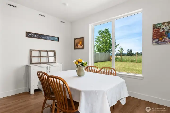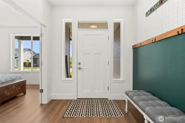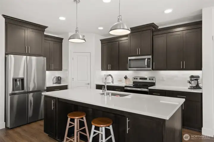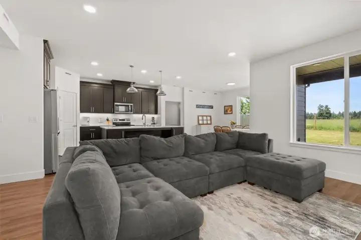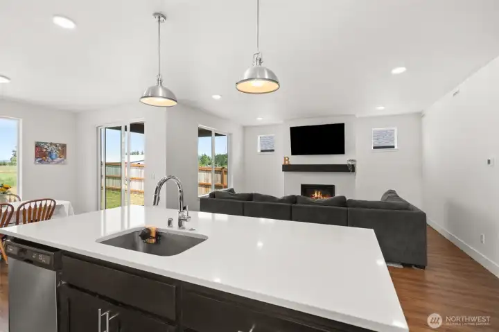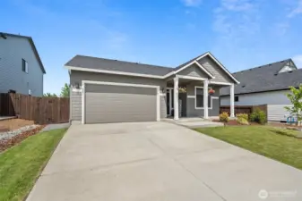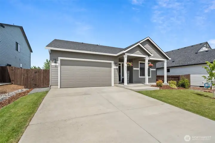 Experience effortless single-level living in this beautifully crafted 4-bedroom, 2-bath home, thoughtfully designed for both comfort and style. Set on a spacious lot, this inviting residence showcases custom alder cabinetry, a stunning quartz slab kitchen, and modern LED disk lighting throughout, creating a bright, upscale atmosphere. The open-concept layout flows seamlessly, offering a pantry, dedicated laundry room, and abundant storage for everyday ease. Retreat to the luxurious primary suite featuring a dual vanity, soaking tub, and walk-in closet — your private escape at the end of the day. Outdoor living shines with a covered front porch and covered back patio, perfect for relaxing or entertaining year-round. Front landscaping and sprinkler system already installed make maintenance effortless, allowing you to simply move in and enjoy. Blending quality craftsmanship, modern finishes, and functional design, this home delivers comfort, elegance, and convenience in one exceptional package. A must-see!