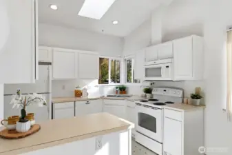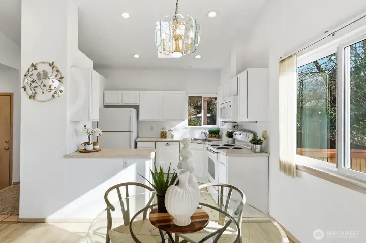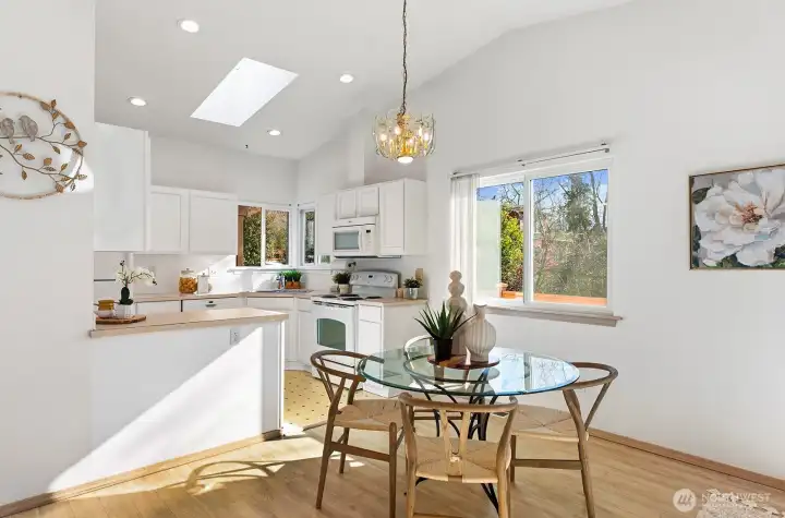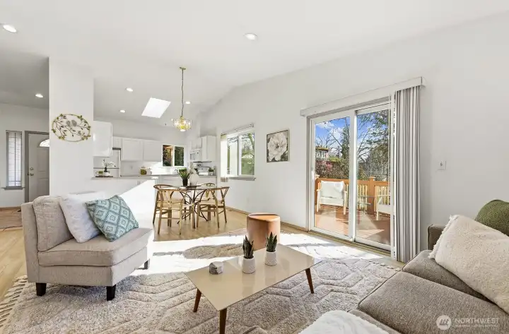 Fabulous Seward Park home in park-like setting. An oasis in the city, this home is private and serene. A charming covered porch and garden greet you. Enter to light-filled kitchen with skylights and dining area opening to a large south facing deck and yard. Enjoy a cozy living room with gas fireplace. Main level features primary bedroom with ensuite bath and 2nd bedroom and full bath. Daylight lower level with large rec room opens to grassy yard. 2nd kitchen plus two additional bedrooms and full bath makes for lots of useful space as home office or guest room! Great potential for ADU or Mother-in-law with exterior lower level access! A gardener’s paradise with delightful, sunny yard in a natural setting. Large, 2-car garage. Great location! Blocks to Lake WA, parks & recreation. Mins to Columbia City, Light Rail, freeway, airport & Downtown.