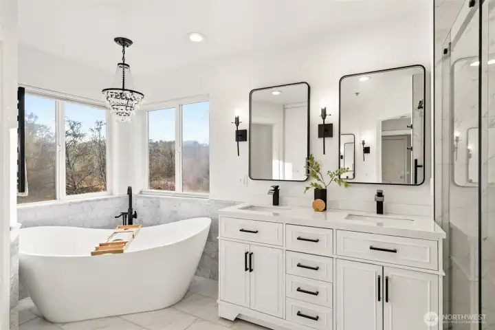 Nestled in nature, this stunning 2-story home offers beauty and privacy in an incredible location. With recent high-end updates, the owners invested generously and thoughtfully, envisioning this as their long-term residence, a huge benefit to the fortunate next owner. Soaring ceilings, fresh interior paint, warm hardwoods and new carpet are just the start. Breathtaking new kitchen with 48-inch professional range, huge island and all the thoughtful cabinet upgrades you could want. Family room adjacent offers a beautiful fireplace with shiplap and tile surround. Sumptuous primary suite has a view of the adjacent natural area, providing a serene atmosphere. Stunning ensuite bath, complete with free standing tub, towel warmer, vanity area in addition to dual sinks and a gleaming spa style shower! Two additional bedrooms, huge bonus room (can be 4th bdrm with its 2 closets) and another updated bathroom are found on this level. The expansive, fenced back yard serves as a personal oasis...covered area for fire pit or a table to dine al fresco, unique plants adorning beautiful the stone path and a custom, hand-built playhouse that showcases exceptional craftsmanship. New roof, newer furnace and hot water tank. A/C and whole house ventilation system for comfortable living. This home truly stands out as one-of-a-kind!